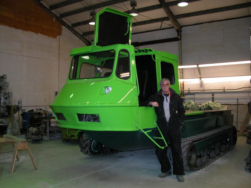 In addition to this all-terrain vehicle, an amphibious all-terrain vehicle, developed by Alaska Amphib together with Tyler Rentals, was presented at the event. It is smaller than all-terrain vehicle “ARKTOS”. AmphibAlaska has a length of 6 meters and a weight not exceeding 8 tons. It is designed to perform tasks on land and water at a speed of 30 km / h. The hull is an amphibious all-terrain vehicle of the ship type, 12 inch caterpillars move up in water.
